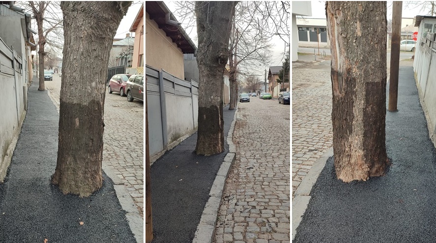 Gest sinonim cu crima ecologică, pe str. Bravilor din Galați, în apropierea parcului CFR. Mai mulți copaci au fost asfaltați, la propriu, de parcă “specialiștii” care s-au ocupat de lucrare nu i-ar fi văzut în calea lor.