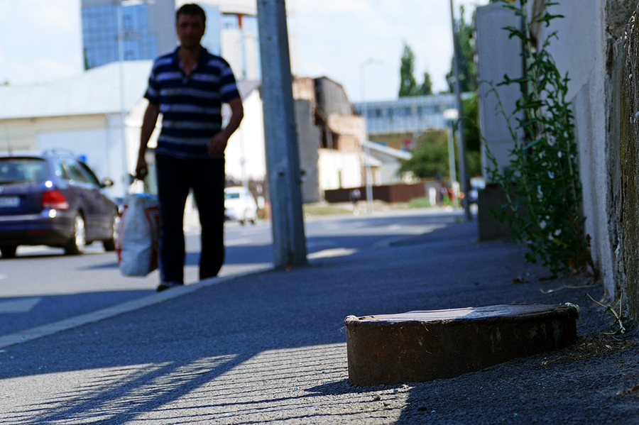 Pe de altă parte, pe o stradă recent reabilitată, pe bani foarte mulți, pe trotuarul vestic, unde se află numerele impare, se pot vedea din loc în loc niște „relicve” metalice. Nouă ni s-a spus că ar fi răsuflători sau guri de vizitare de la rețeaua de încălzire sau cea de apă caldă.