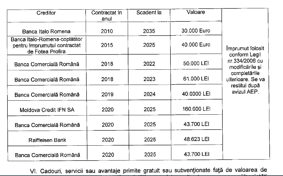 După ce a fost reales, în 27 septembrie 2020, președintele Costel Fotea a scris în declarația lui de avere (vezi foto mai jos) că are următorul pomelnic de datorii, cităm: