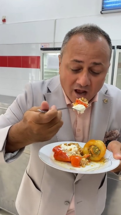 Astăzi (joi, 5 septembrie 2024), directorul Picu Roman s-a filmat într-un costum de ginerică, care probabil costă câteva sute de euro, mâncând ardei umpluți (vezi foto mai jos).