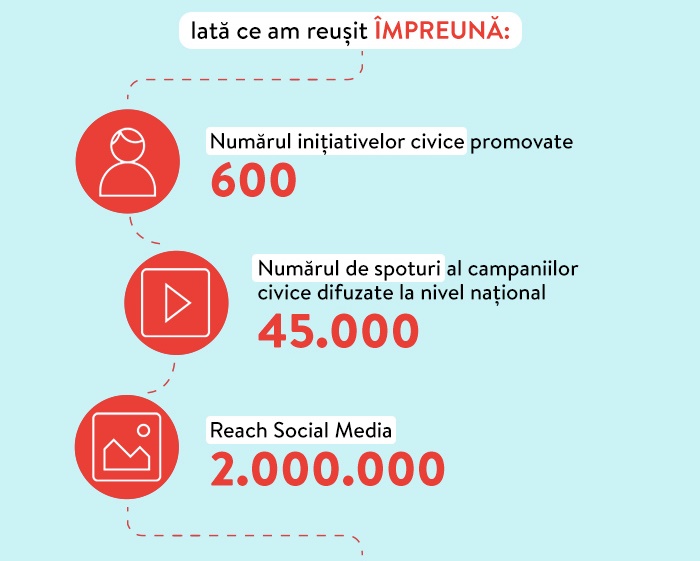 Numărul de spoturi al campaniilor civice difuzate la nivel național: 45.000;