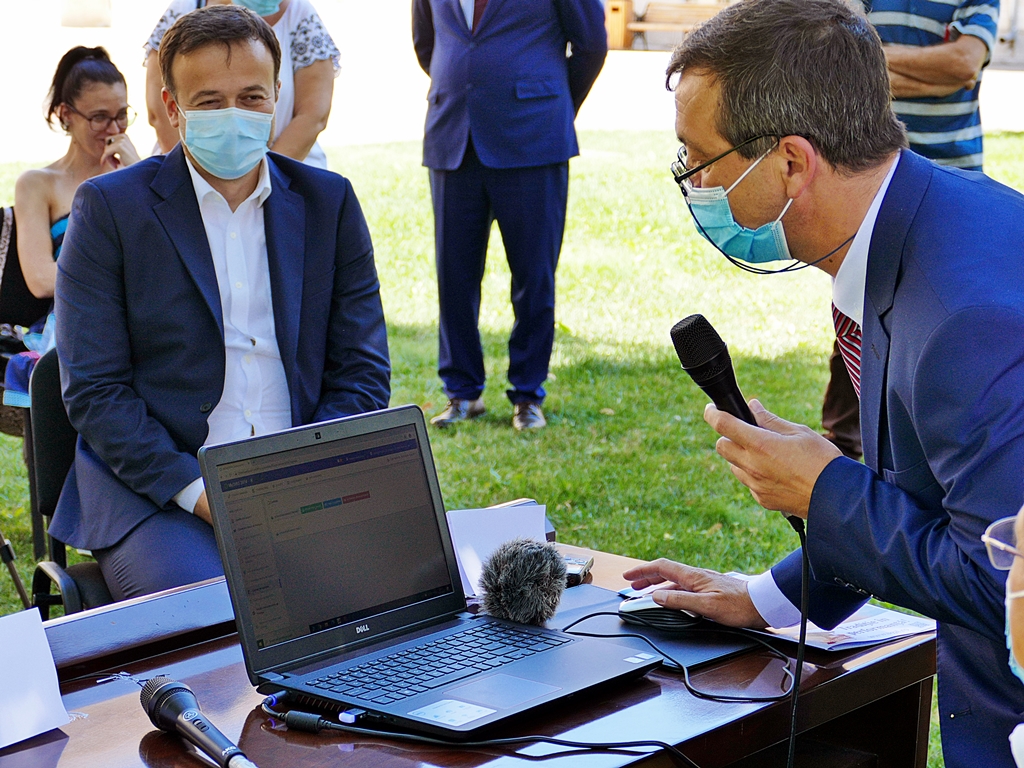 Semnarea contractului de finanțare de către rectorul Universității „Dunărea de Jos”, profesorul dr. Lucia Puiu Georgescu, s-a petrecut în aer liber, wireless, în prezența ministrului Fondurilor Europene Ioan Marcel Boloş, el însuși profesor universitar. La ceremonie, ca o recunoaștere a rolului major pe care universitatea gălățeană îl are în dezvoltarea comunității, au participat inclusiv prefectul județului, Gabriel Avrămescu, dar și senatorul gălățean al cărui partid se află la guvernare, George Stângă (foto deschidere).