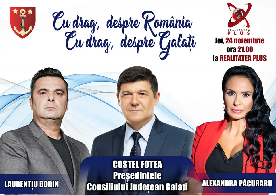 Președintele Consiliul Județean (CJ) Galați, Costel Fotea (PSD) a fost lăudat (promovat) pe Facebook că joi (24 noiembrie 2022) va participa la o emisiune la postul de televiziune Realitatea Plus. Acest post de televiziune este atribuit omului (țeparului) de afaceri gălățean Maricel Păcuraru, condamnat definitiv la 4 ani cu executare în dosarul “Poșta Română” în care prejudiciul a fost de peste 4 milioane de euro.