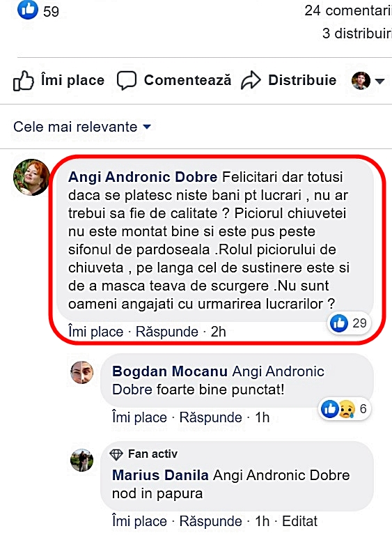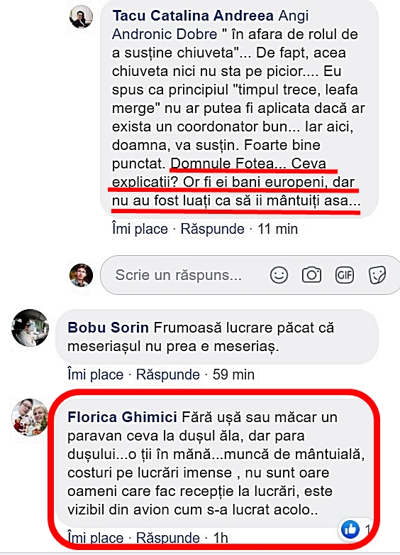 Noi redăm aici, integral, toate comentariile apărute până la momentul ștergerii antologicei poze cu chiuveta pe a cărei scurgere sperăm că s-a dus și ultima brumă de credibilitate pe care o mai avea Costel Fotea în ochii gălățenilor cu un nivel satisfăcător de rațiune.
