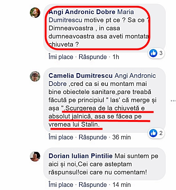 Așa încât poza respectivă, înfățișând o baie recent renovată a fost ștearsă pur și simplu cu tot cu comentariile aferente.