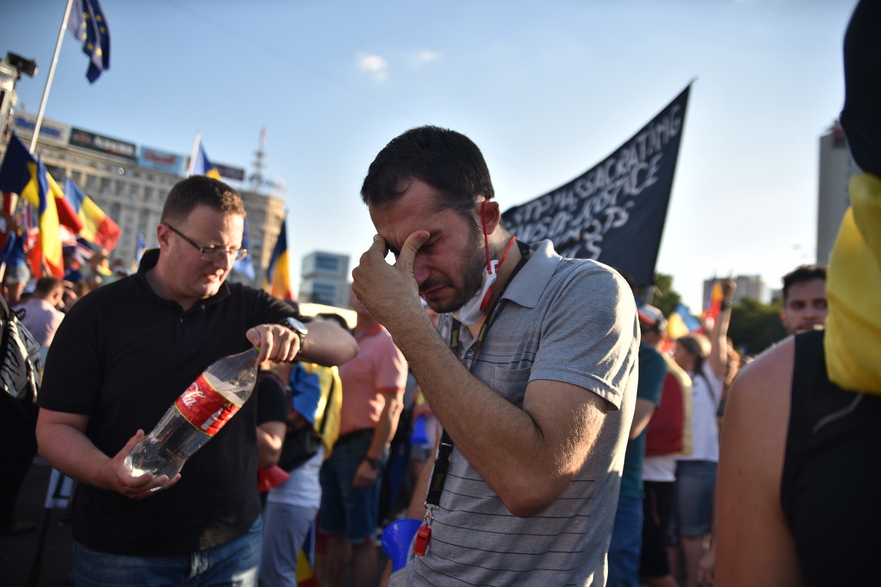 După câteva secunde s-au simțit gazele. Repet, eram în spate. La o sută de metri de cei din față. Nu eram în primul rând, ci în spate cu pensionarii și cu copiii. Nu știu ce inseamnă exact “gaz lacrimogen”, dar chestia aia din aer nu prea te făcea să plângi; mai degraba te facea să te sufoci și să crezi că o să mori. Au fost momente de haos, atacuri de panică, oameni căzuți, altii care vomitau sau se țineau de ochi și strigau speriati. A cam fost panică.