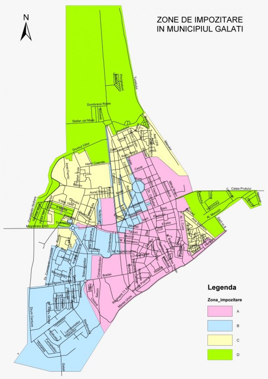 Acum 10 ani, în anul 2013, Primăria Galaţi avea următoarea delimitare a zonelor de impozitare: