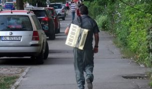 Poate că nu este el cel mai neprihănit dintre contribuabilii gălățeni, dar muncește. Nu dă în cap, nu fură. Doar cântă și încântă.