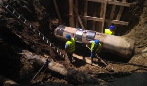 O magistrală Apă Canal Galați a crăpat vineri după-amiază, pe str. Brăilei, lucru care a provocat surparea carosabilului în