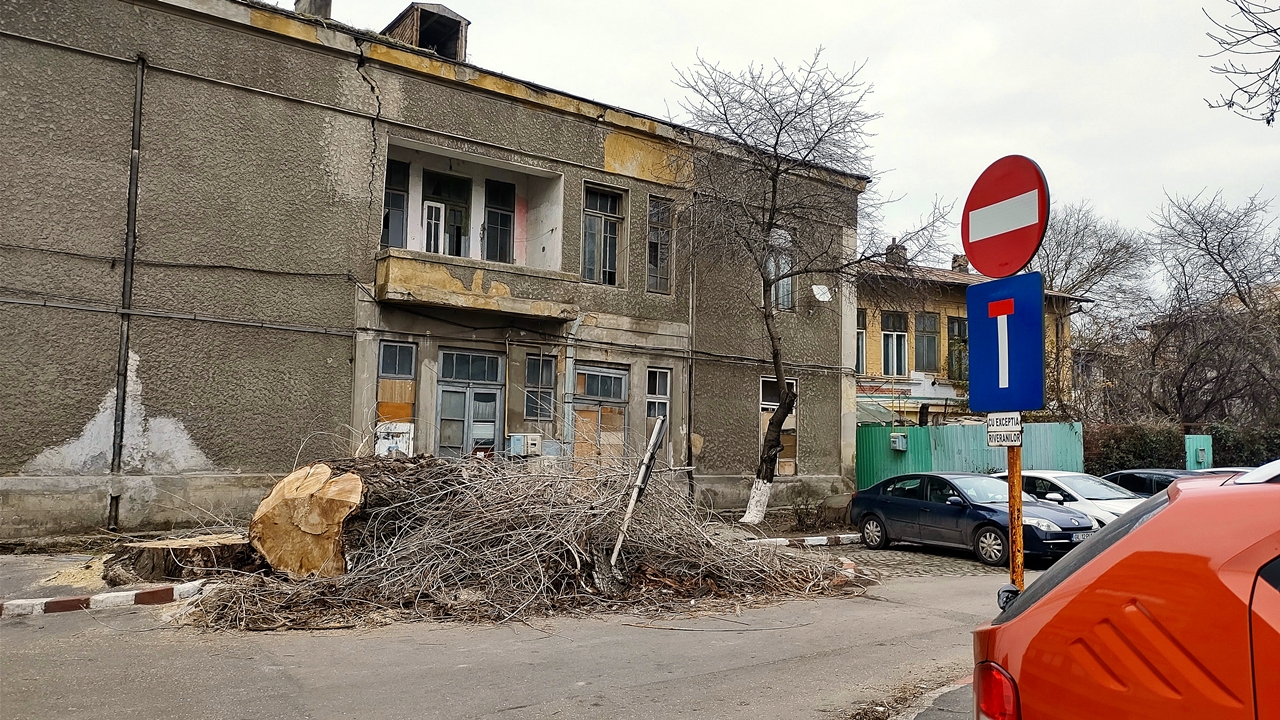 Dar, între noi fie vorba, dacă ați vrea să recuperați o clădire veche și, eventual, să-i faceți intrare prin lateral, eventual și cu niște locuri de parcare, nu vi s-ar părea normal să scăpați de copacul care vă ia priveliștea și doi metru pătrați foarte valoroși cât timp nu sunt la doi metri sub nivelul solului?…