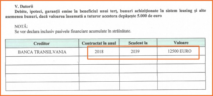 În declarația de avere modificată după apariția articolului din faramogul.ro, Romeo Marin susține că mai are de achitat numai 12.500 de euro din suma de 60.000 de euro împrumutată în 2018 (vezi foto mai jos).