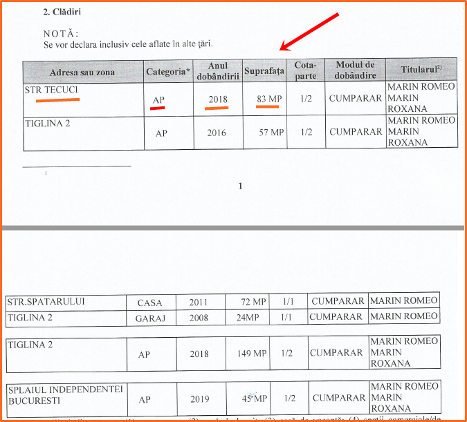 Din acești bani, aferenți anului fiscal 2017, familia Marin a reușit să trăiască și să economisească bani încât să își permită să cumpere apartamentul de 83 de mp, situat pe str. Tecuci, despre care actualul director Romeo Marin nu a amintit niciodată nimic în declarațiile lui de avere, până miercuri, 5 august 2020, când l-am prins cu minciuna și cu suma de 360.000 de lei pe care nu o putea justifica legal.