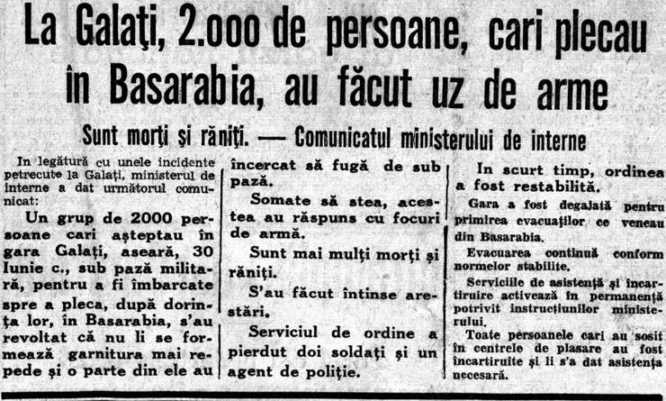 Pe 30 iunie 1940, Galați a devenit un așa-numit punct de forfecare, în care se încrucișau refugiații venind din Basarabia și armată română în retragere, cu cei care doreau să treacă în sens invers ca să ajungă în provincia proaspăt anexată de URSS, în special evrei speriați de măsurile antisemite luate de Guvernul Antonescu.