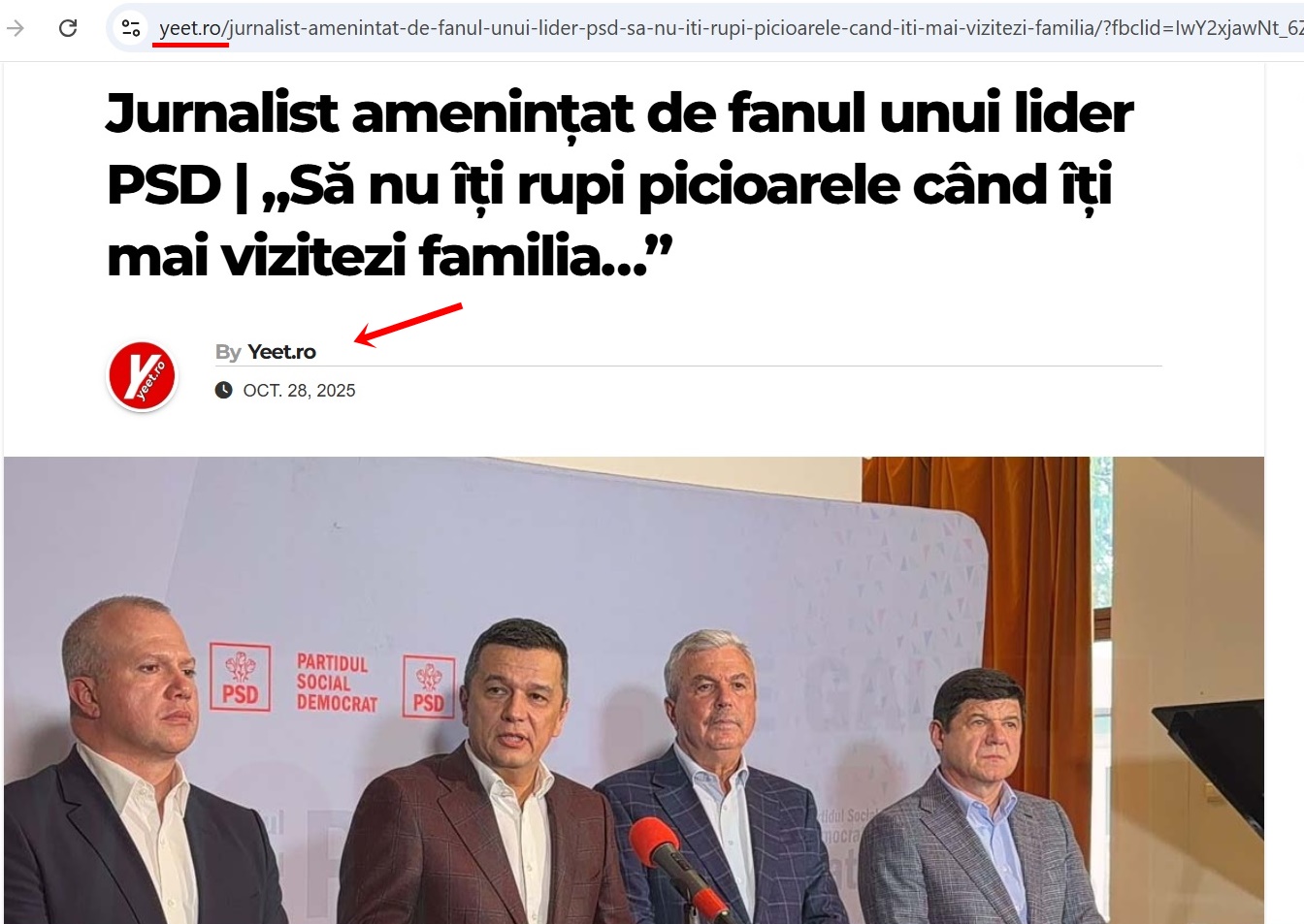 Redăm mai jos un screenshot din publicația Yeet.ro.