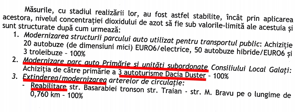 În raportul pe trimestrele I si II din anul 2021, privind stadiul realizării măsurilor și acțiunilor din Planul de calitate a aerului în municipiul Galați pentru reducerea dioxidului și oxizilor de azot (NO2/NOx) pe perioada 2018-2022, sunt niște gogorși de-ți stă mintea-n loc.