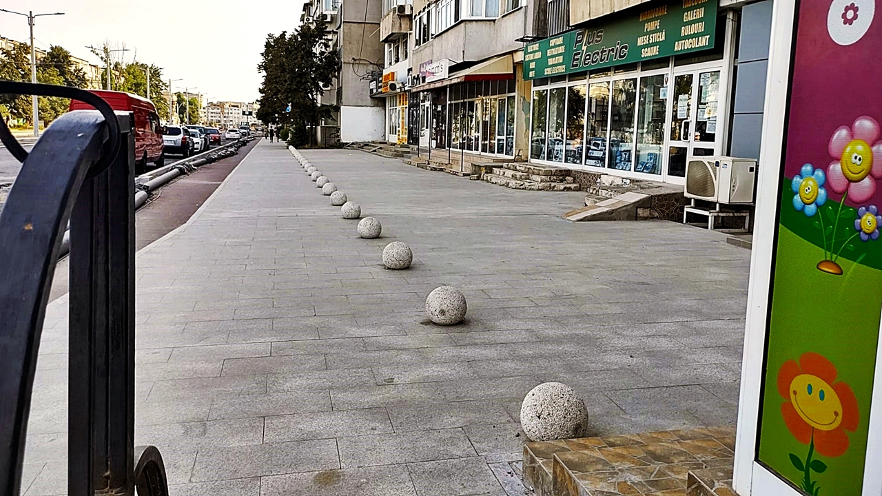 În schimb, nu contează că strada zace în continuare în praf și gropi, șanțuri și bolovani. Oriunde s-au pus trei dale cap la cap, au apărut și vestitele bile ale lui Pucheanu. Căci, vorba-aia, nicio masă fără pește și nicio zi fără o excrescență de beton care să-ți amintească că Galațiul se împiedică de un mare ctitor mic de nimic.