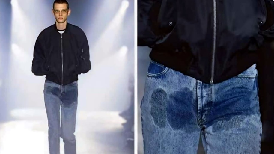 O astfel de pereche de blugi “pătați de pipi” se vinde cu 800 de dolari, iar vânzările merg de la excelent în sus, potrivit cotidianului britanic The Mirror, semn că sunt destule persoane dispuse să dea bani și să iasă pe stradă ca și cum tocmai s-ar fi scăpat în pantaloni.