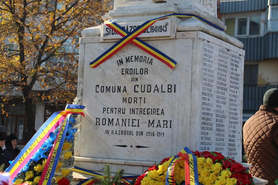 „A dat domnu sa apara un brad în Cudalbi de sărbătorile de iarnă! Felicitări Domnului Primar! Ce-i care aveti neamuri, bunici, stra-bunici, antichități si alte specii scrise pe monument si va deranjează, luati-i acasa!”