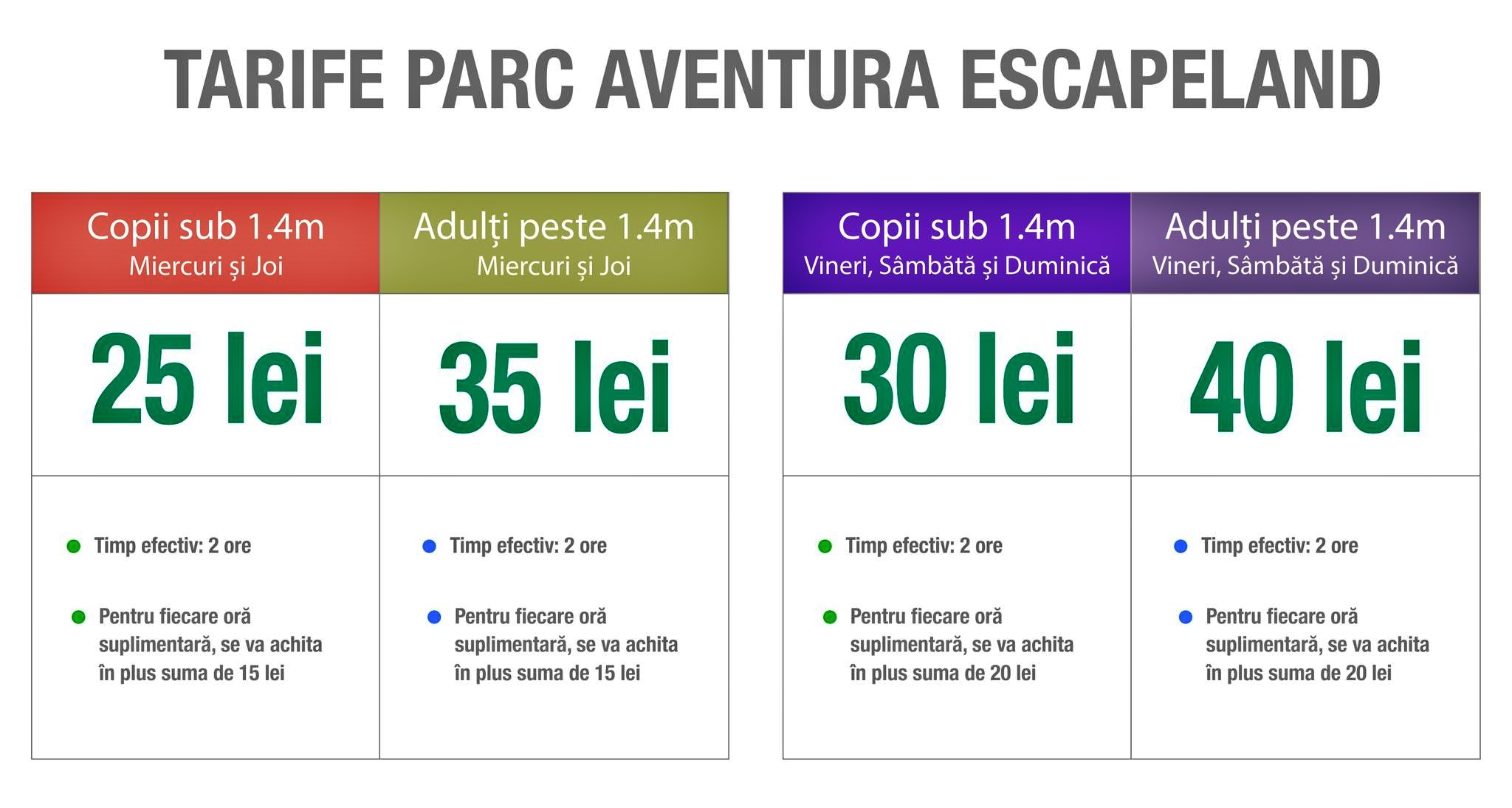 Știm că în alte parcuri de aventură din țară prețurile sunt mai mari decât la Escapeland din Pădurea Gârboavele.