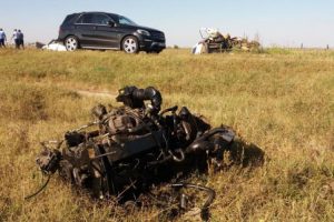 Un accident rutier violent s-a produs, vineri, în jurul orei 15.00, pe drumul vechi care leagă Galațiul de Brăila. Impactul a fost atât de puternic încât motorul unei mașini a fost aruncat aproximativ 15 metri pe câmp.