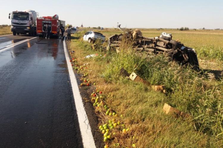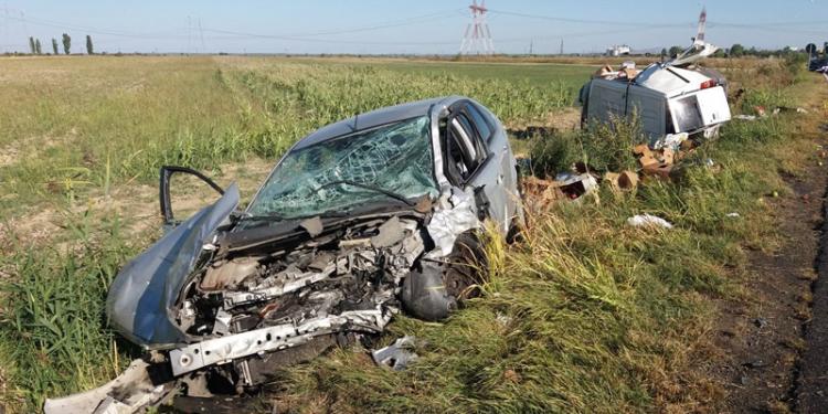 O dubă a izbit frontal un Ford, pe drumul Galați-Brăila. Motorul dubei a zburat 15 metri pe câmp | FOTO