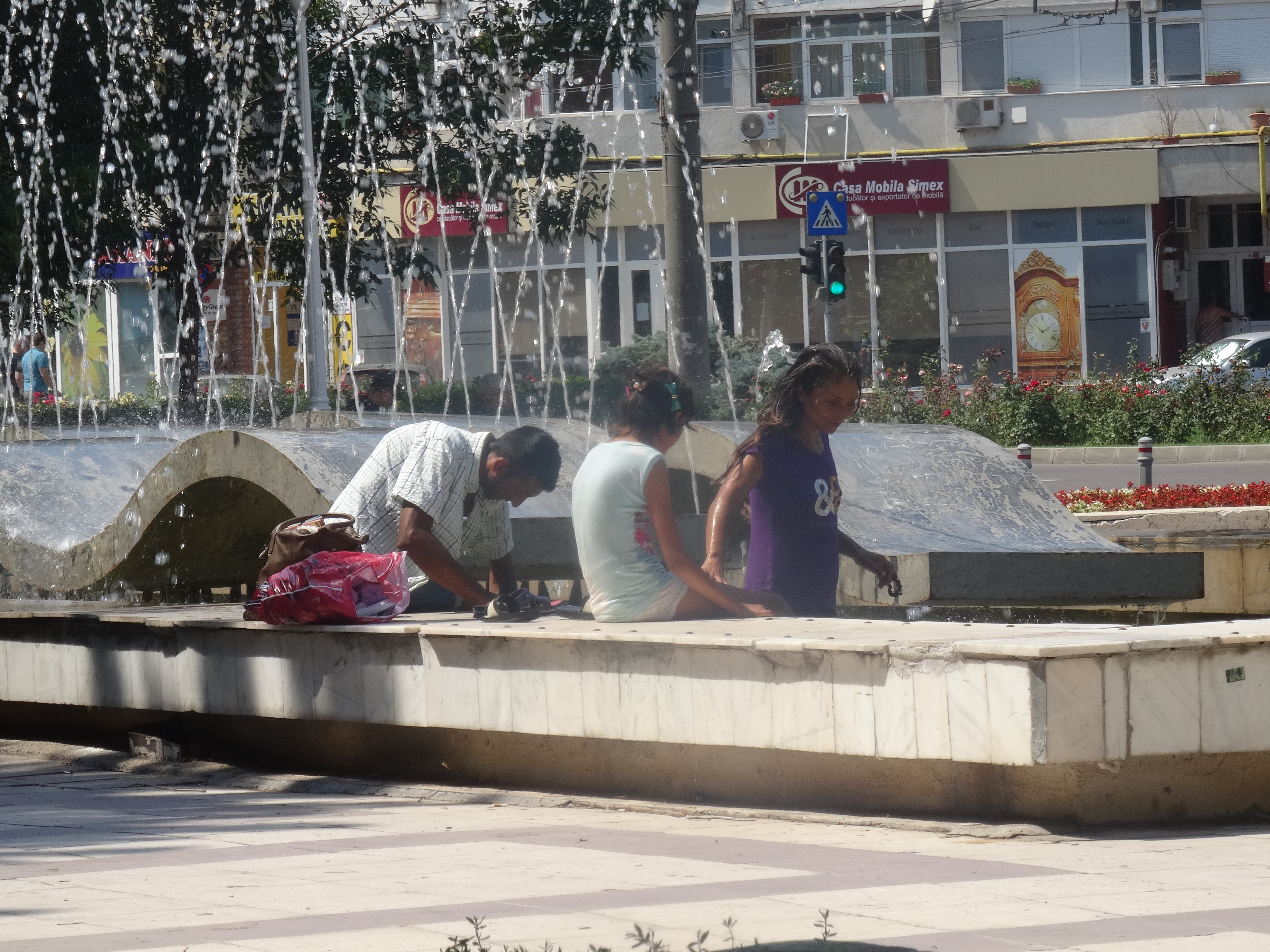 Galațiul s-a topit astăzi de căldură, așa că oamenii s-au răcorit și ei cum au putut. De exemplu, o familie de romi a pășit fără inhibiții în fântâna arteziană din Mazepa (vizavi de zona Stirex) și s-a scăldat preț de 3-4 minute.