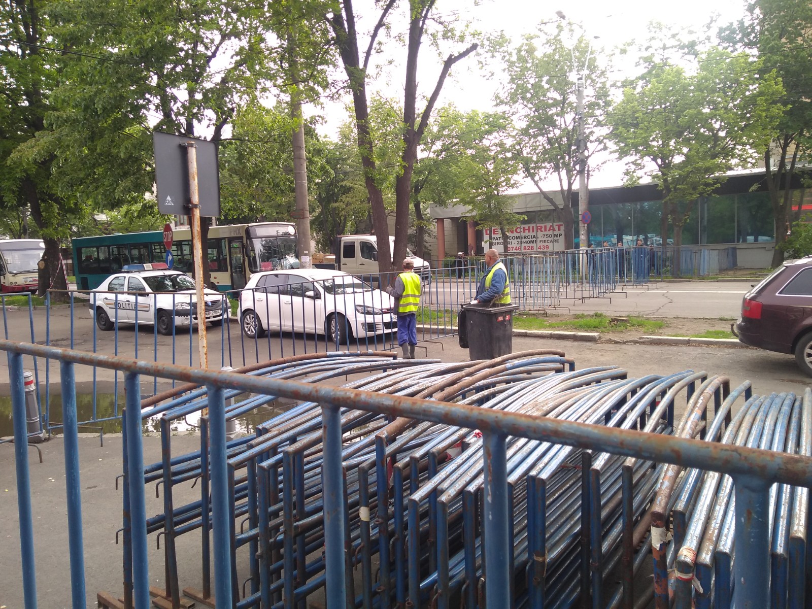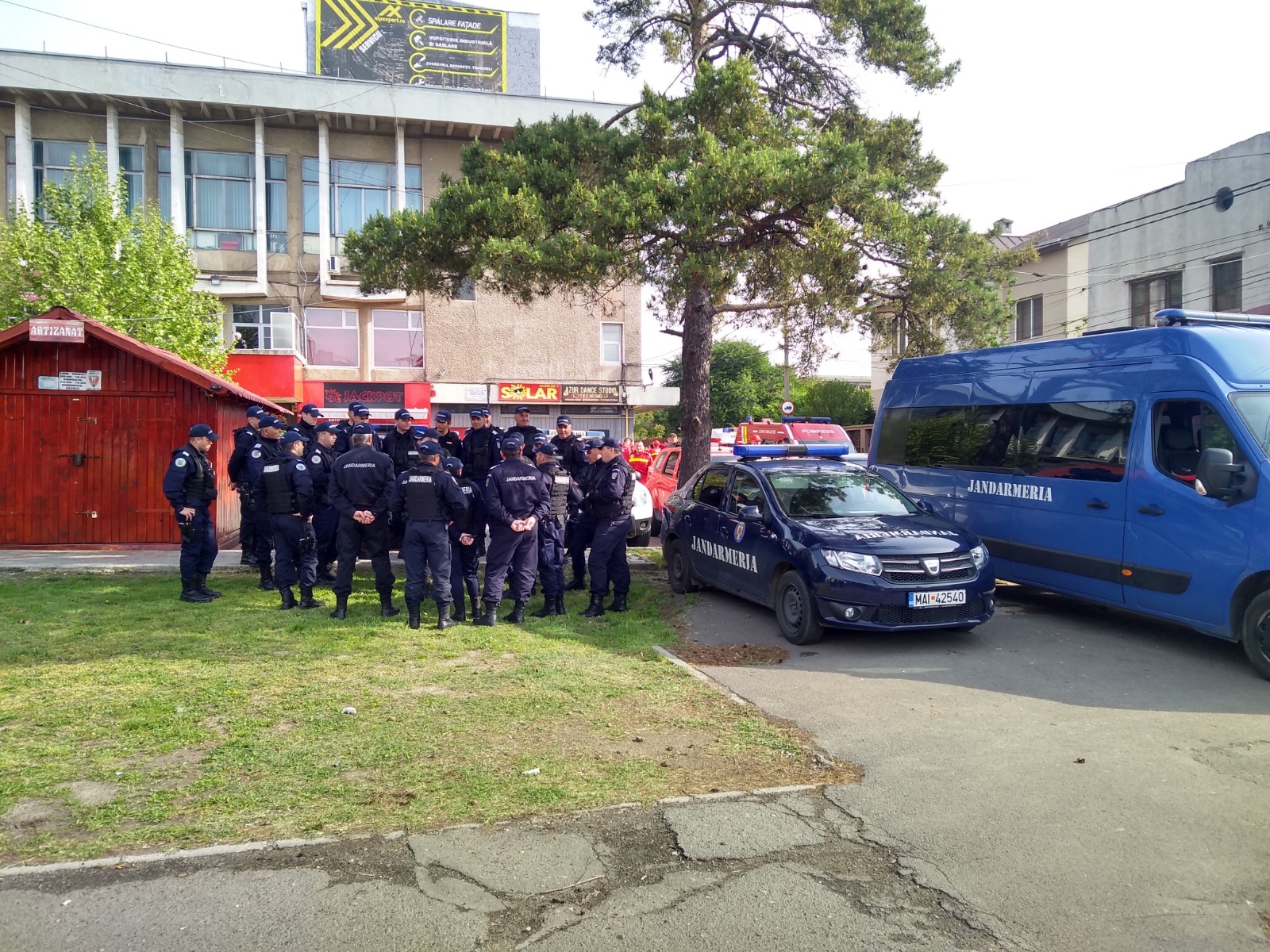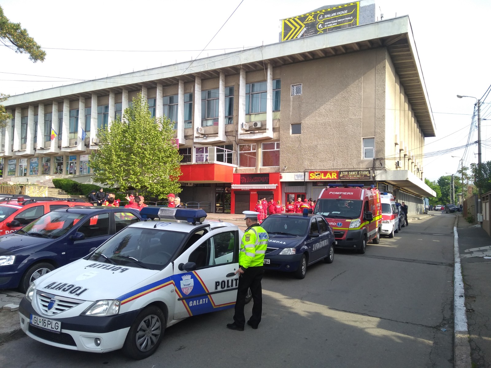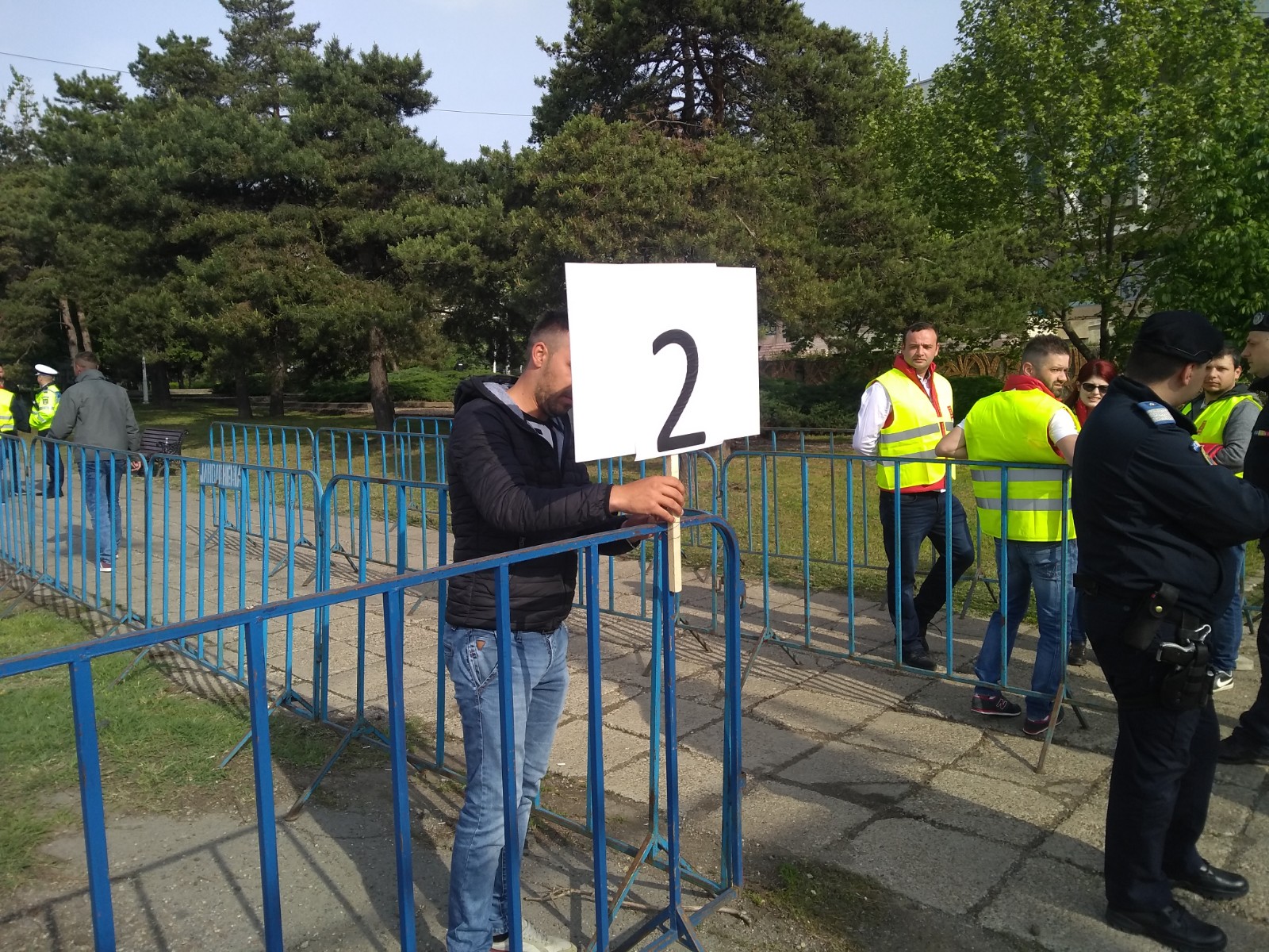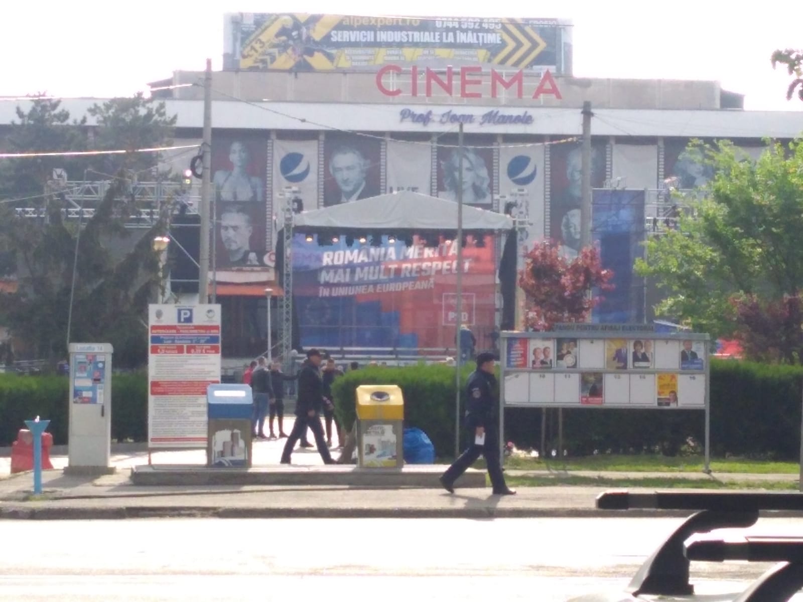 Platoul de la Casa de Cultură a Sindicatelor și străzile din jur au fost împânzite de polițiști și jandarmi. Patrule trec încontinuu și scrutează aleile dintre blocuri, boscheții și alte locuri dosnice din care văd sau li se pare că cineva se îndreaptă spre locul evenimentului.
