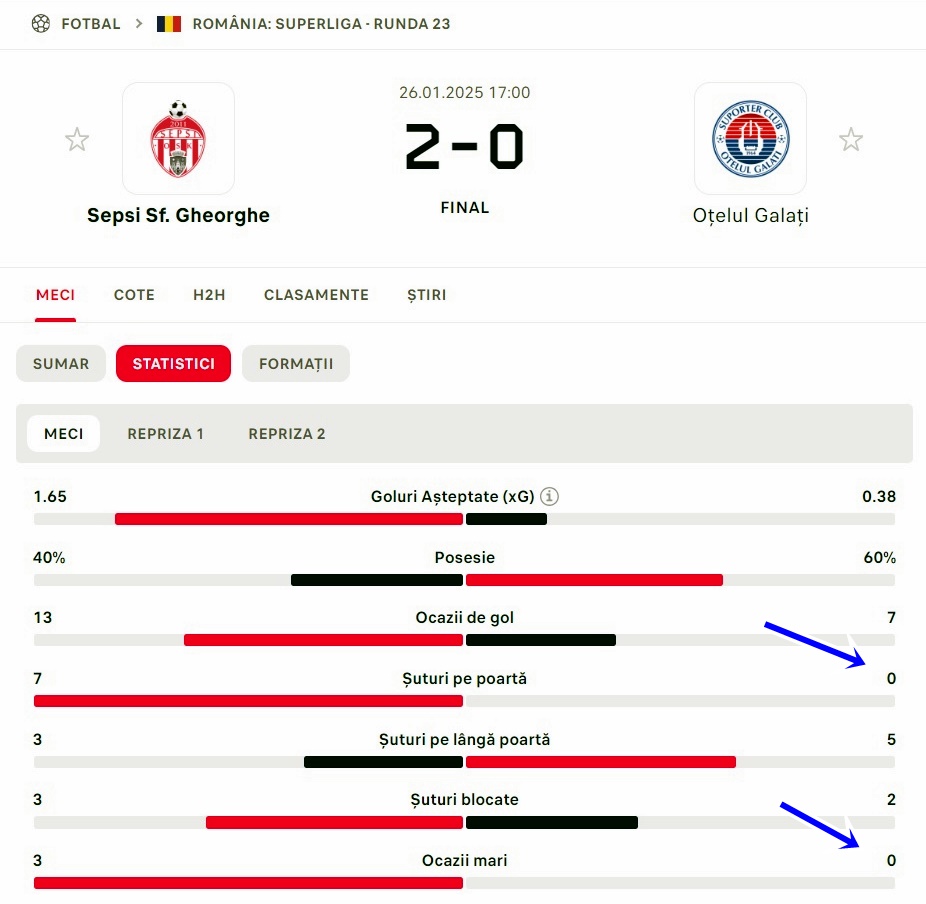 Zero șuturi pe poartă?! – vezi statistica mai jos.