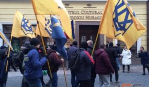 „Poziționându-se în fața Centrului Cultural Român "Eudoxiu Hurmuzachi" din Cernăuți, tinerii naționaliști ucraineni, cu măști pe față și însoțiți