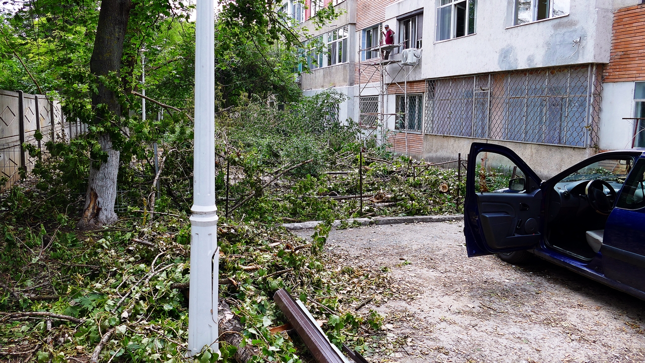 În acest răstimp, bulevardele Traian Vuia și Milcov arătau ca în galeria foto de mai jos. Iar la capătul străzii Aurel Vlaicu, activistul civic Marian Dumitru – cu aspirații politice mai nou, e drept – se chinuia cu încă un coleg să scape trotuarul de lângă Liceul Tehnologic „Carol I” (fost CFR) de trunchiurile uriașe ale copacilor doborâți de furtună.