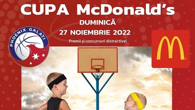 Concret, Phoenix Galați va organiza “Cupa McDonald’s”, în data de 27 noiembrie 2022, la Sala Sporturilor din Galați (vezi anunțul mai jos).