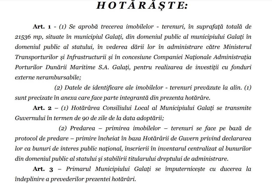 Însă, după ce s-a pus problema modernizării (betonizării) Falezei Galați, terenul a fost transferat de Primăria Galați în subordinea APDM Galați – vezi foto mai jos.