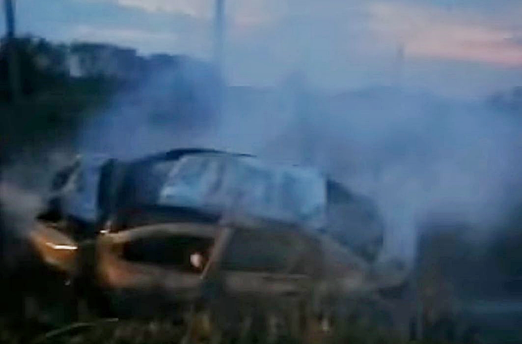 Mai grav pare a fi detaliul din celălalt film, făcut din căruța care trece pe la locul accidentului chiar când mașina ardea. Se poate observa un alt incendiu, mai mic, de vegetație, la vreo trei-patru metri în urma autovehiculului, pe marginea șoselei.