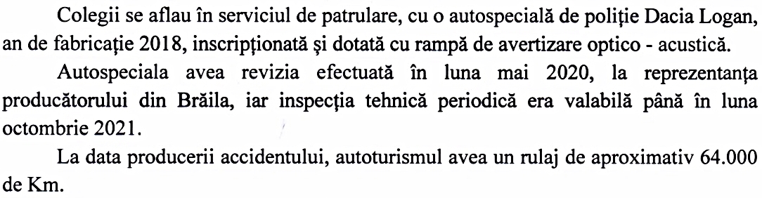Unul dintre detaliile scandaloase este acela că autospeciala de poliție, marca Dacia model Logan, nu era deloc vreun „sicriu” cum s-au repezit să blameze comunicatorii sindicatului Europol. Același sindicat care, de exemplu, vizavi de incidentul tânărului bătut cu pumnii într-o noapte din perioada stării de urgență, susținea fără probe că victima abuzului polițiștilor ar fi scuipat și înjurat anterior incidentului.