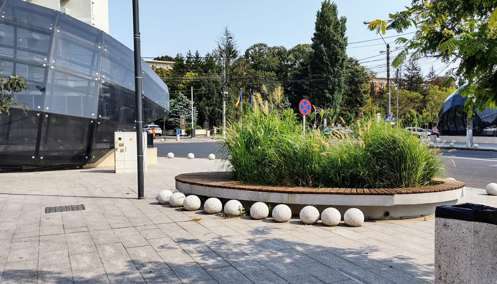 Amplasarea acelor bile în jurul băncii din centrul Galațiului nu are nicio logică.