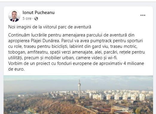a scris astăzi primarul Galațiului, Ionuț Pucheanu, pe contul său de Facebook (vezi captură foto mai jos).