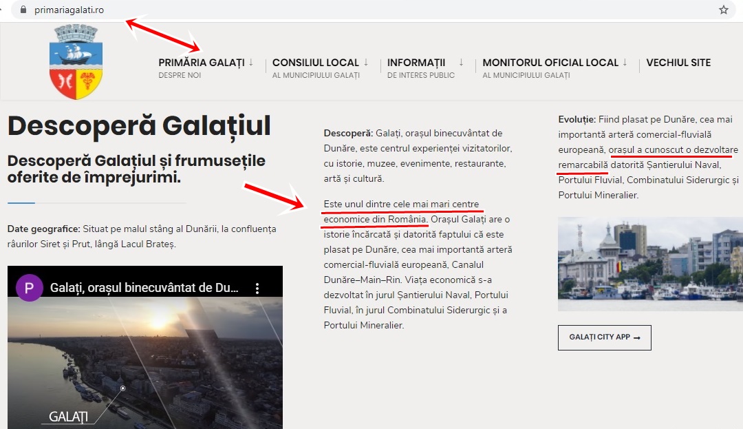 Și mai spune administrația Pucheanu, pe site-ul Primăriei Galați, că Galațiul a cunoscut “o dezvoltare remarcabilă” în ultimii ani datorită Șantierului Naval, Combinatului Siderurgic și Portului Mineralier.