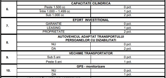 Iar cireașa de pe tortul fermentat de incompetență al Priumăriei Galați stă la punctul 8 din criterii. Deși Legea 448/2006 la art. 64 alin. 2 spune clar că, încă din 2007, „toți operatorii de taxi au obligația să asigure cel puțin o mașină adaptată transportului persoanelor cu handicap care utilizează fotoliul rulant”, Primăria Galați face din aceasta un criteriu cu punctaj, nicidecum unul eliminatoriu.