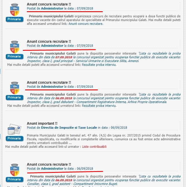 Primăria Galați scoate, săptămânal, cel puțin 3-4 posturi la concurs. Asta în condițiile în care aceste locuri de muncă sunt plătite cu cel puțin 3.000 de lei net și nimeni nu pleacă de bunăvoie din Primăria Galați.