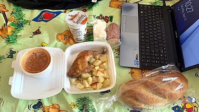 „Hrana este asigurată prin intermediul Cantinei Sociale, până în ora 12 se face distribuirea (…) trei mese: prânzul – mâncare gătită, cina – mâncare gătită și mâncare rece pentru micul dejun.
