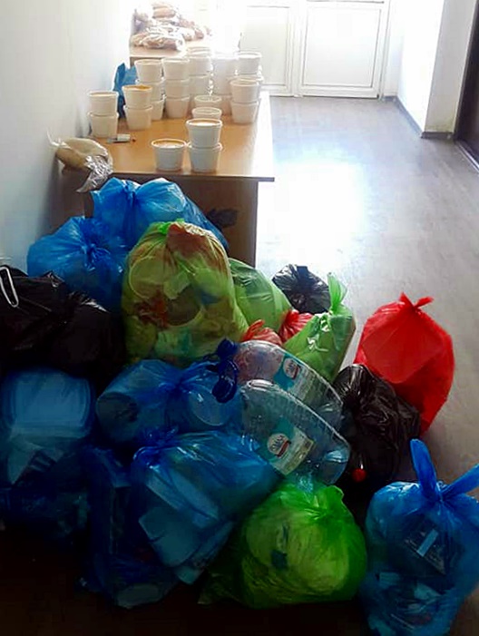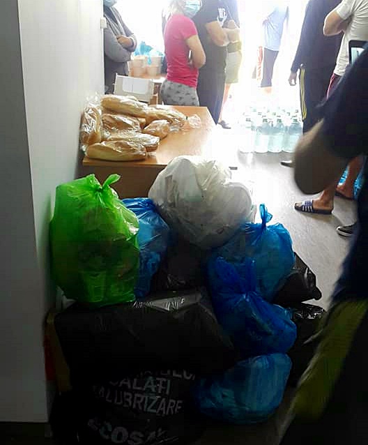 Foarte grav, sub ochii larg închiși ai Direcției de Sănătate Publică și ai altor autorități de control ale Guvernului în teritoriu, persoanele aflate în carantină, în loc să fie deservite la ușa camerei, cum prevede textul legislativ, sunt constrânse să interacționeze. Mâncarea este livrată în hol, pe o masă, la comun/ Mai mult, lângă aceasta, cum se vede și în poze, se află chiar sacii de gunoi pe care tot carantinații trebuie să-i colecteze la grămadă ca să-i ridice municipalitatea când își aduce aminte…