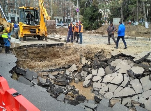 În groapa căscată în asfalt apa băltește, semn că problema se află în curtea Apă Canal. Nu reprezintă o surpriză că directorii acestei societăți de tip monopol, posesori ai unor salarii de neam prost, de minimum 11.000 de lei net lunar, îi sfidează pe gălățeni făcându-se că plimbă o țeavă prin întreprindere, în loc să articuleze un prim răspuns în legătură cu surparea din centrul Galațiului.